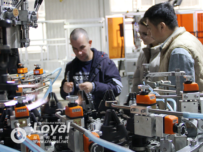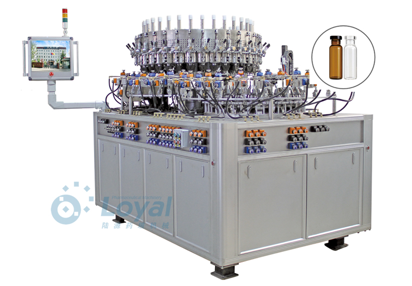 西林瓶生產(chǎn)線包括:自動(dòng)上管、自動(dòng)成型、經(jīng)機(jī)械手轉(zhuǎn)換至前端檢測線(也叫生產(chǎn)管控)、檢測線檢測的項(xiàng)目:1、瓶口內(nèi)外徑 2、瓶身長短 3、瓶身外徑 4、瓶口邊厚 5、瓶底內(nèi)凹尺寸檢測;經(jīng)檢測后的合格品再用機(jī)械手夾盤轉(zhuǎn)換至退火爐網(wǎng)帶上,經(jīng)高溫減除應(yīng)力后再降溫,通過氣動(dòng)吸盤將回火后的小瓶轉(zhuǎn)換至后端檢測線,后端檢測(也是重檢也叫終檢),經(jīng)后端拍照檢測項(xiàng)目